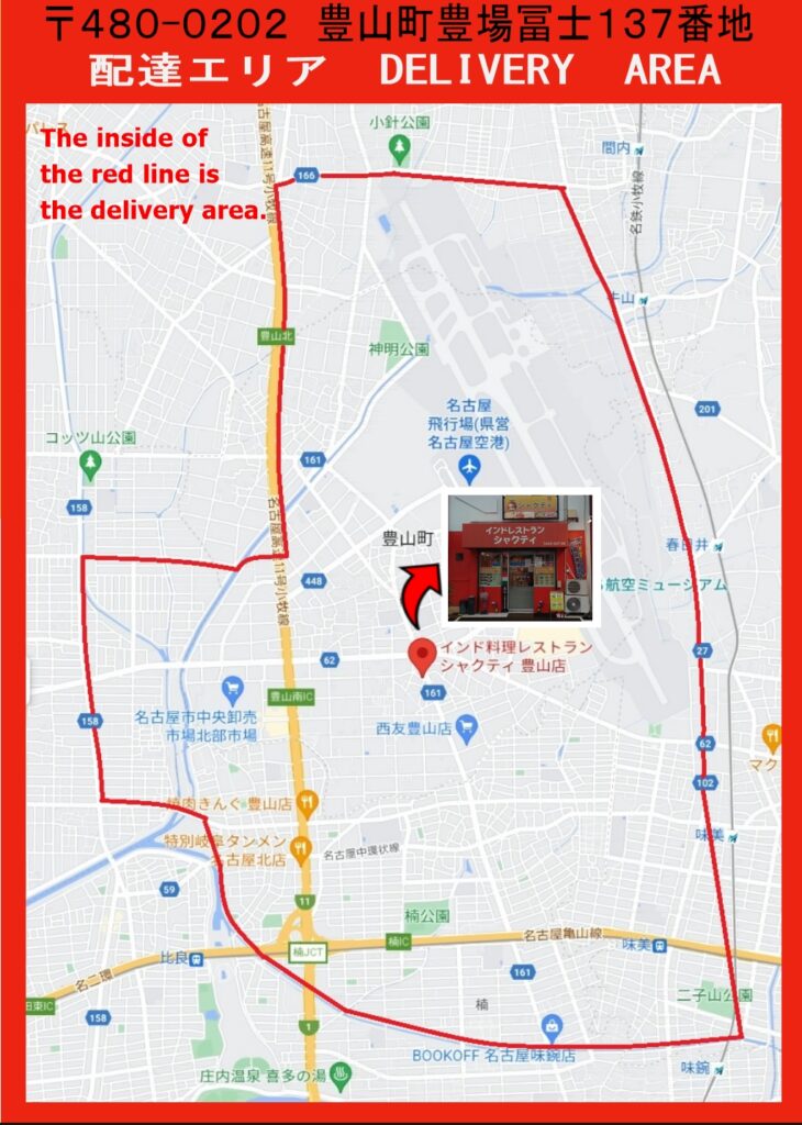 ⇒ 豊山店配達エリア(Toyoyama Shop Delivery Area)