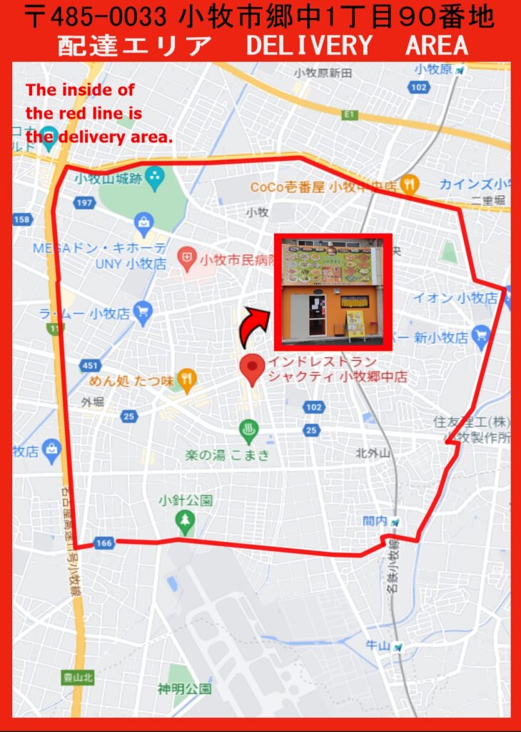 ⇒ 小牧郷中店配達エリア(Komaki Shop Delivery Area)