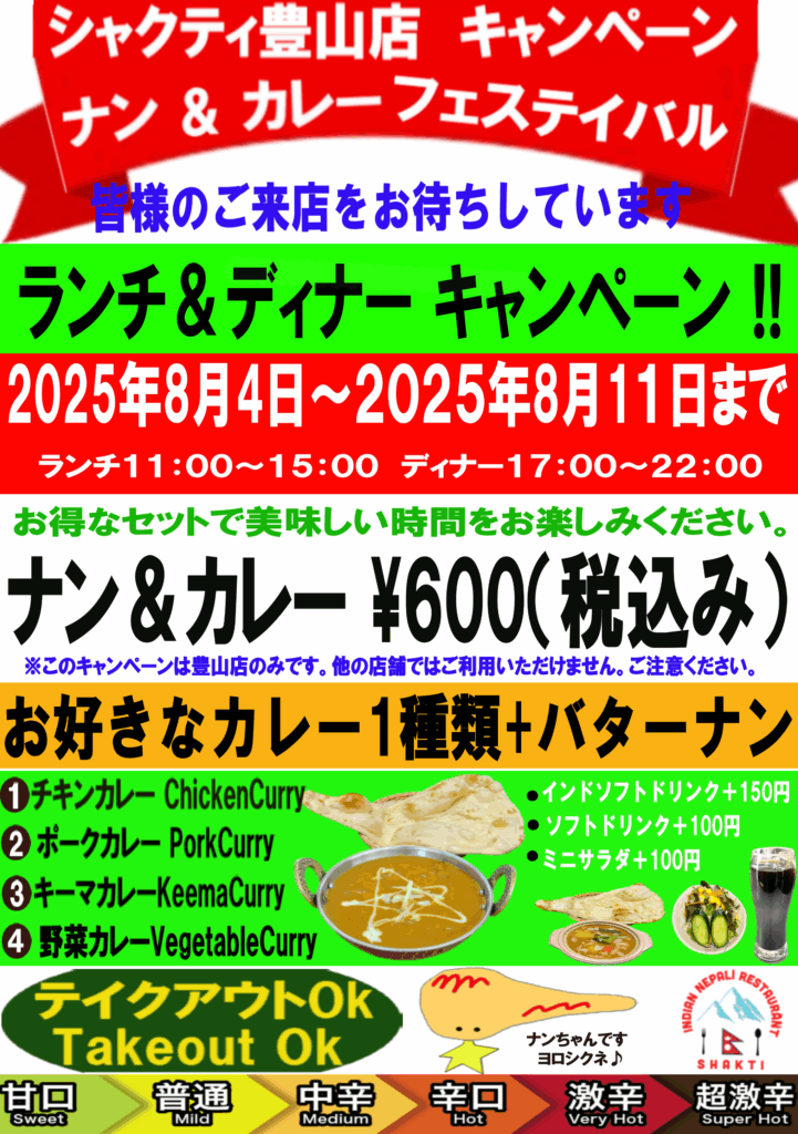 シャクティ豊山店にて、2025年8月4日~2025年8月11日まで